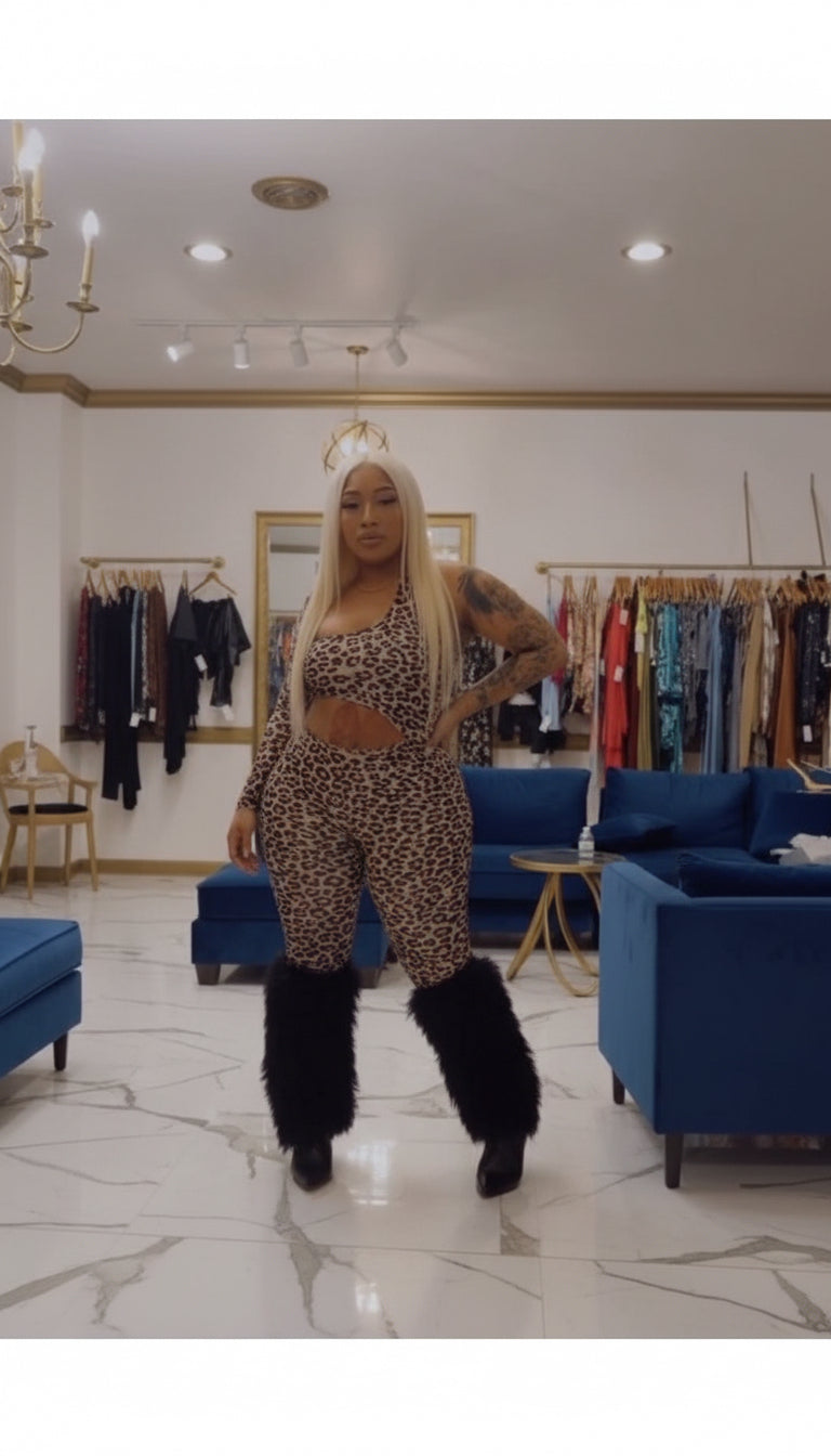 Leopard cut out jumpsuit one sleeve