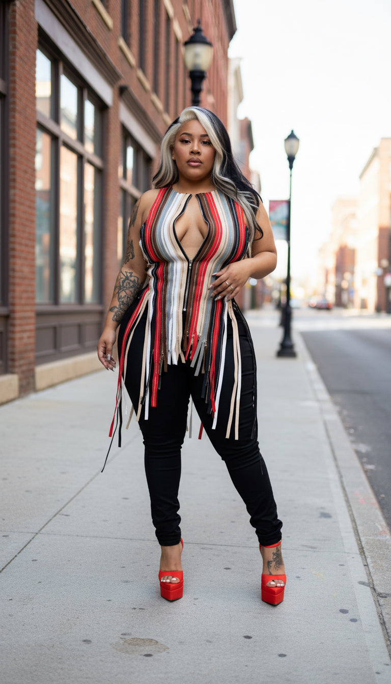 Multi colored zipper shirt super fly. Back is lace up for comfort sizing and tightness